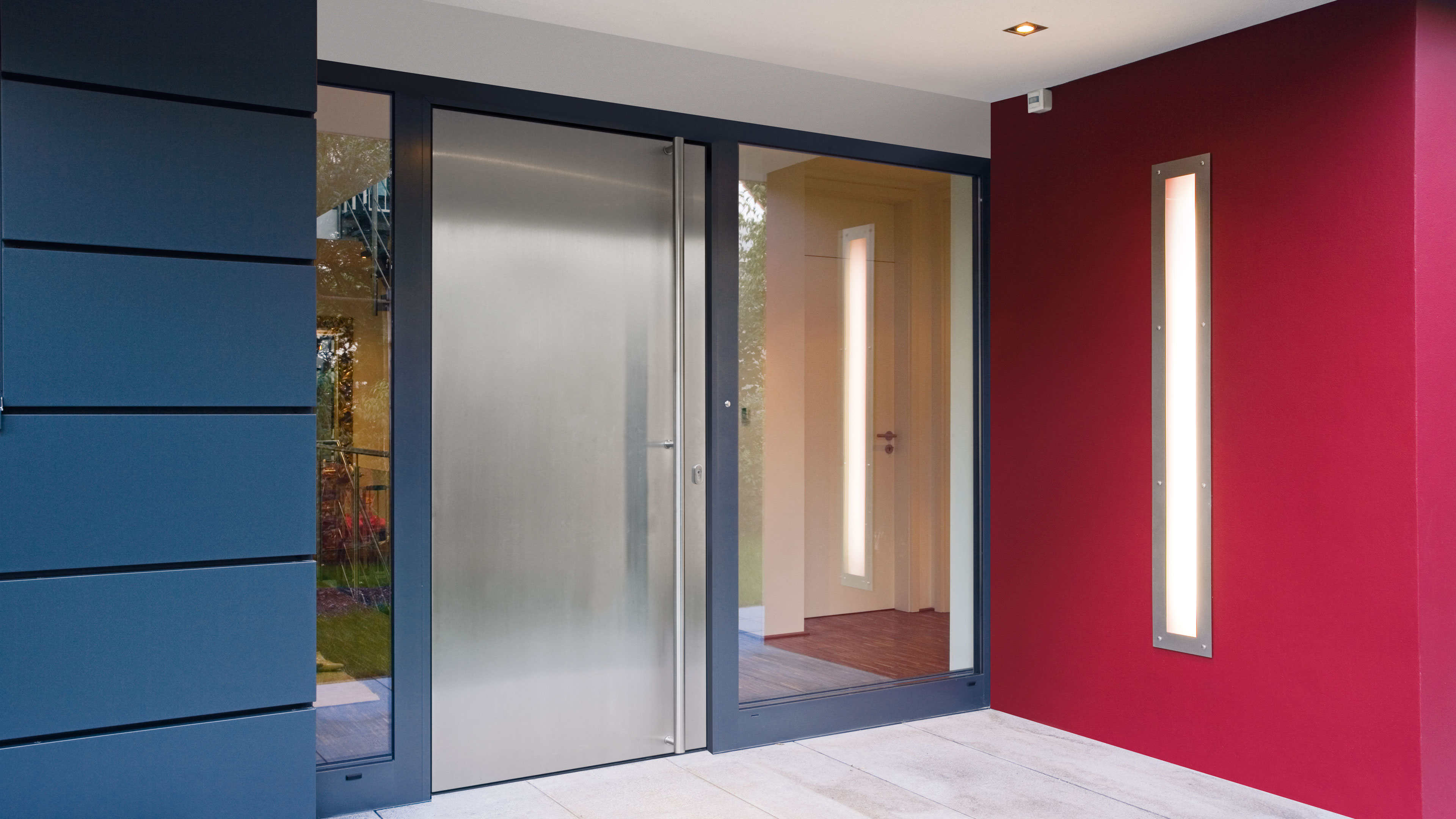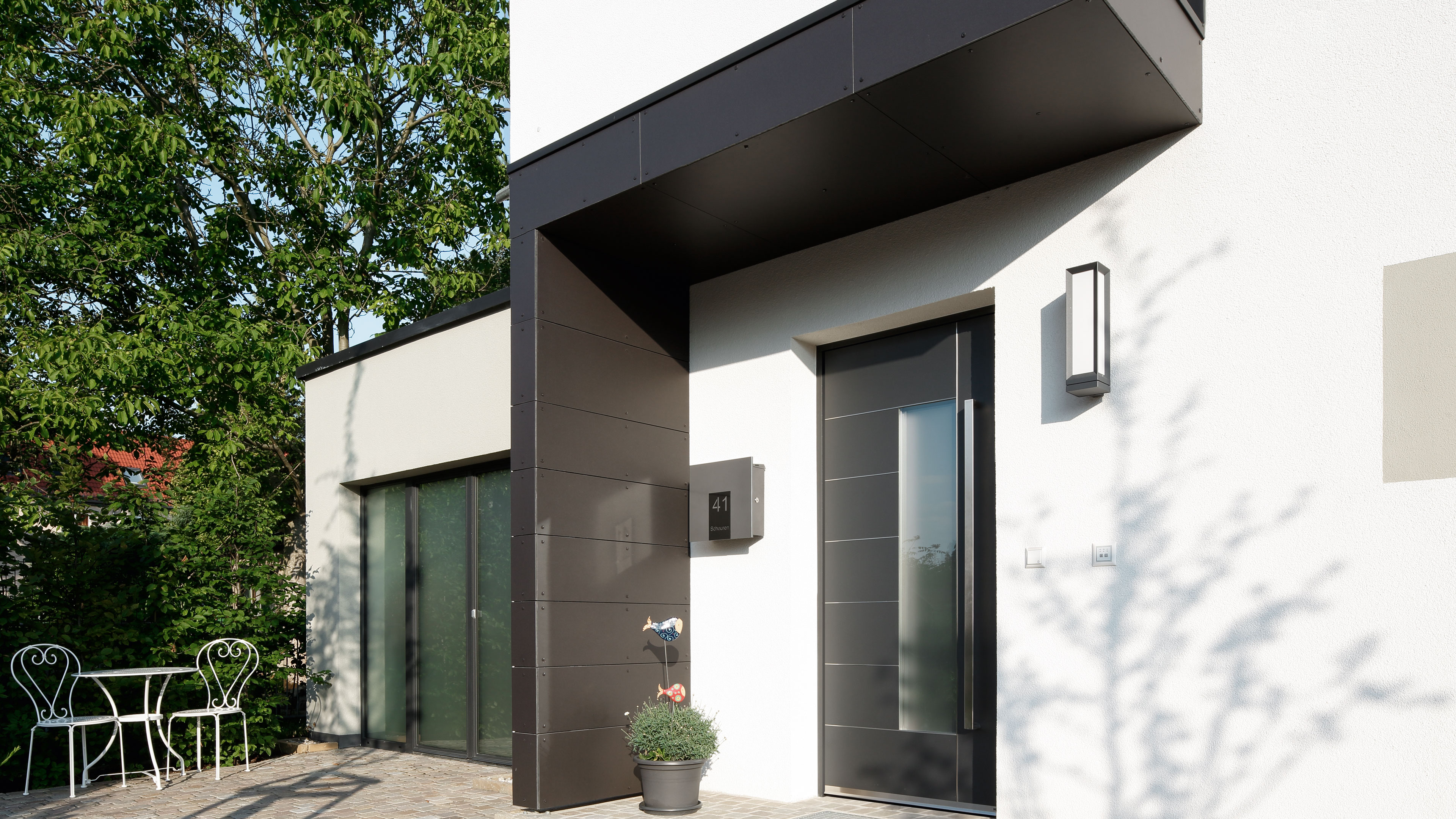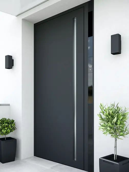 A visually perfect door design is created by combining coordinated door frames, leaf frames and door infills. However you want to express yourself, your Schüco partner has a comprehensive range of door infills and colour design options for you.