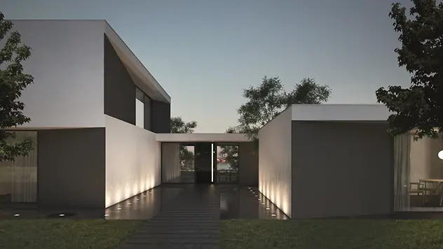 The Sai Glazing Design Edition entrance door incorporates the most demanding aesthetic requirements with an illuminated flush pull grip integrated in the door leaf profile as a design highlight. The flush pull grip melds seamlessly into the standard profile geometry of the door and together with the leaf-enclosing infill offers a flush-fitted appearance, which is of course combined with outstanding thermal insulation properties and stability. The indirect, energy-saving LED illumination harmoniously accentuates and emphasises the handle's discreet design.